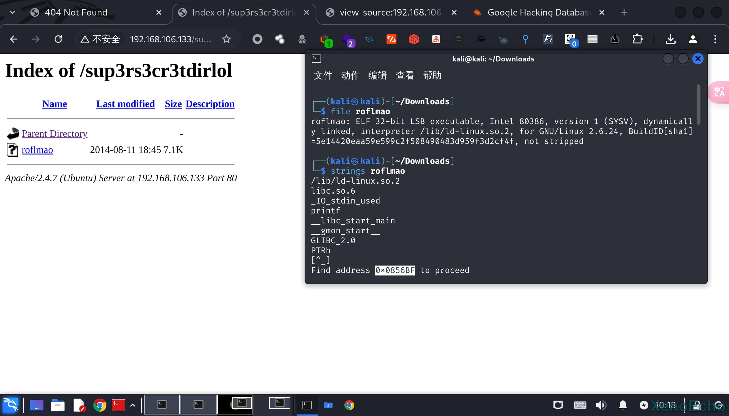 - 前面知道的测试发现是一个站点目录,且存在一个可执行文件,但是支持32位,用二进制形式分析发现提示了一个路径信息,有点像地址位。