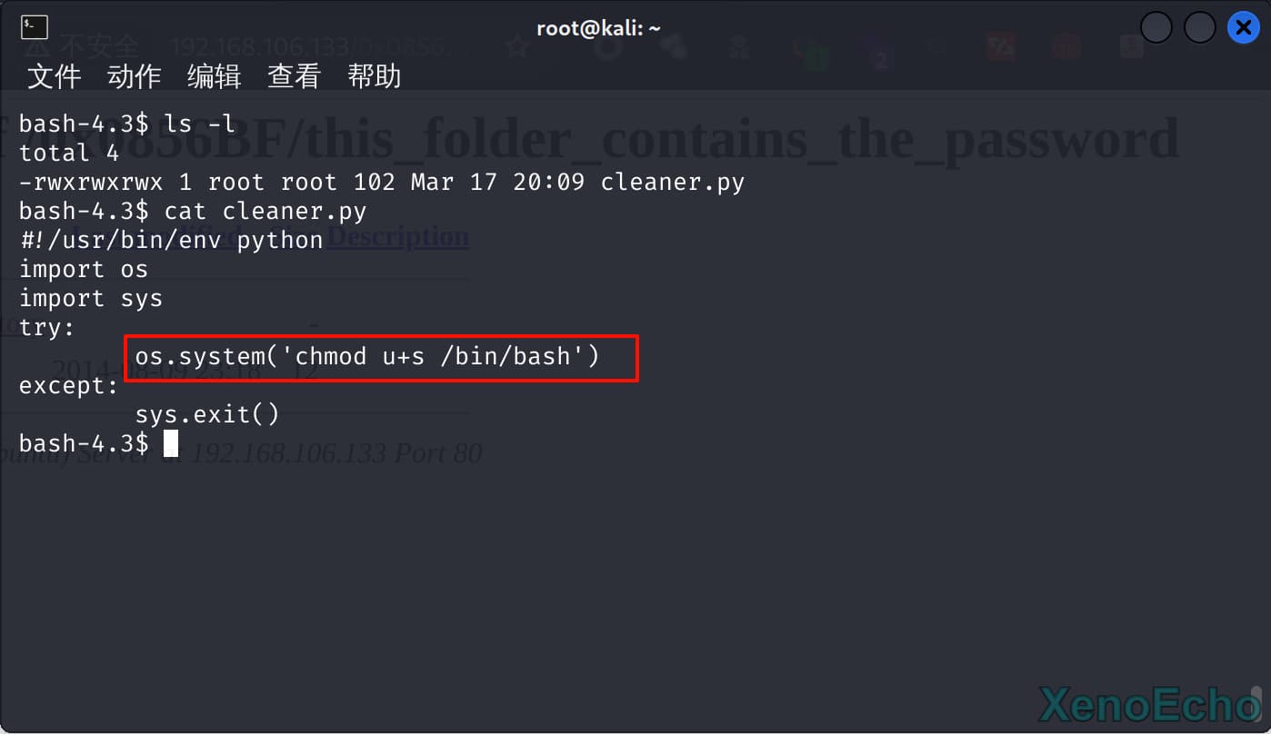 777的权限 - 通过分析注意到使用脚本执行了一段命令,尝试修改脚本。为bash添加