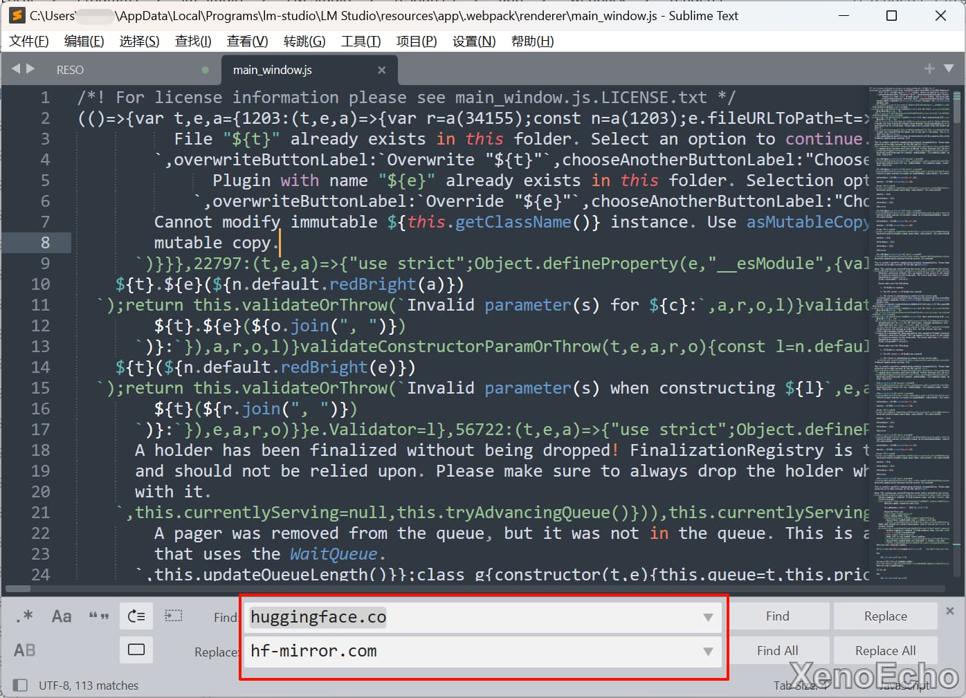 huggingface.co域名替换为hf-mirror.com域名 - 打开当前目录下的