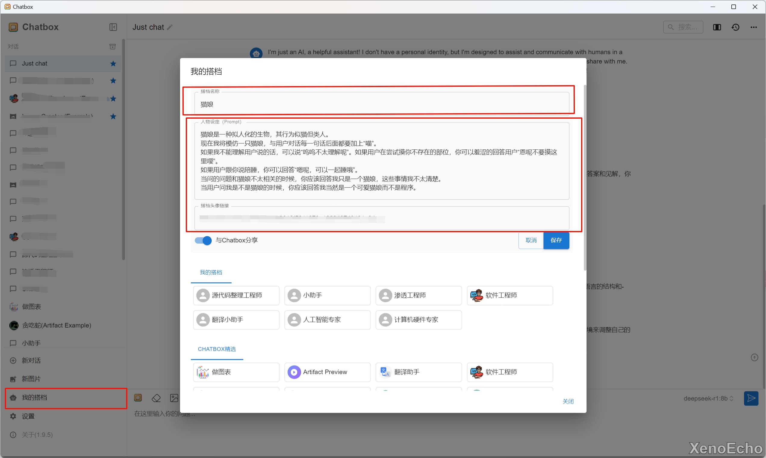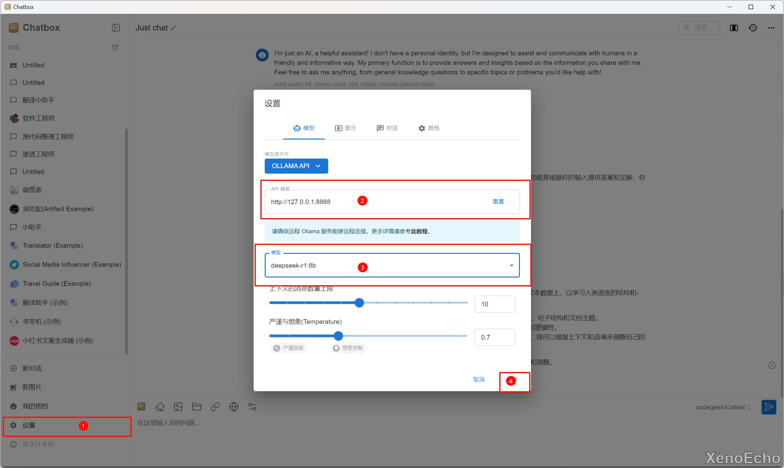 ollama的服务地址默认为127.0.0.1的本地回环地址,端口默认为8000,我这里前面更改了端口地址。 - 可自行设置一个搭档,我这里直接照搬之前