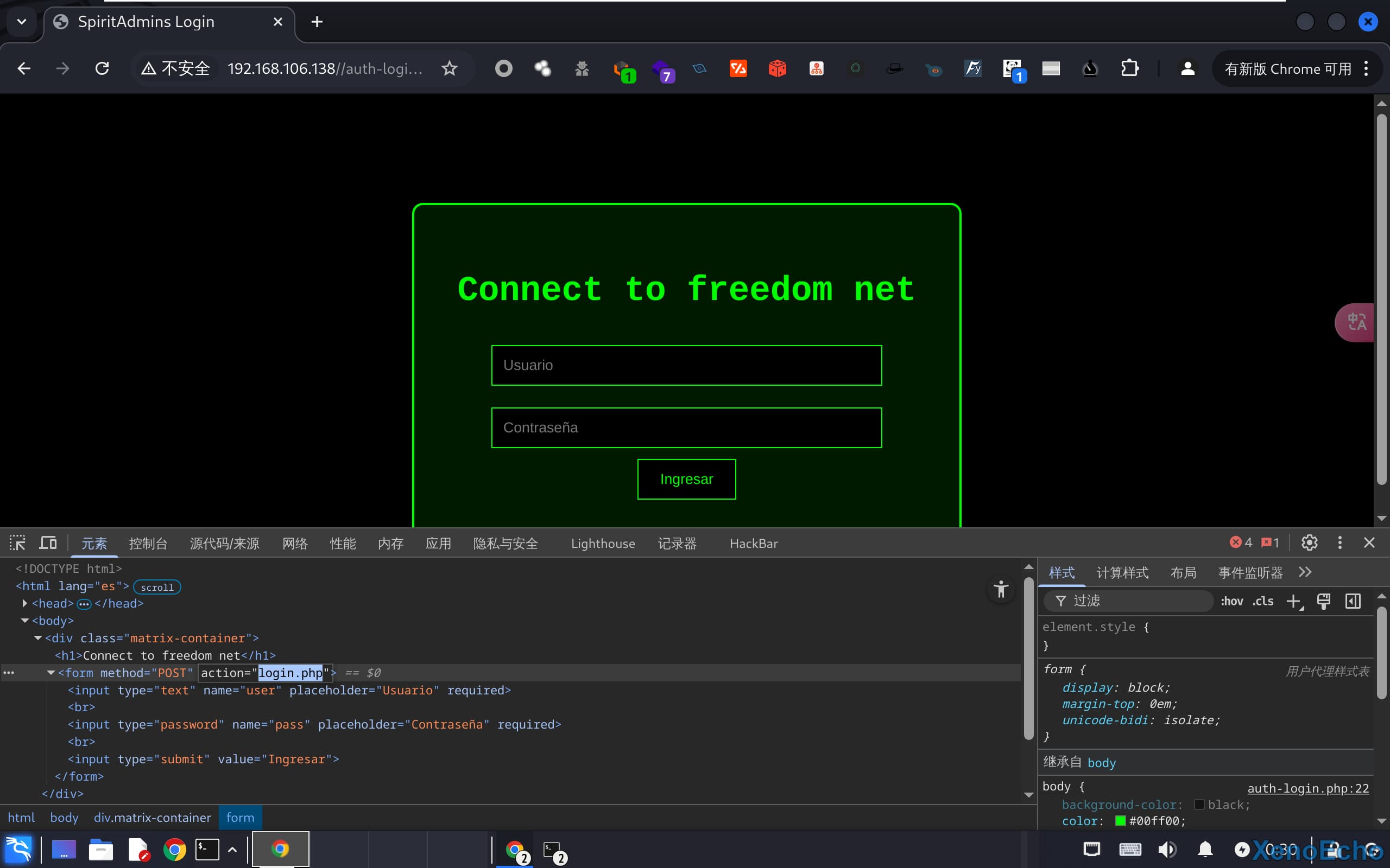 Alita,密钥为pandora,但是尝试登录的时候失败了,现在只有一个能和后端交互的页面就是刚刚的登录页面。