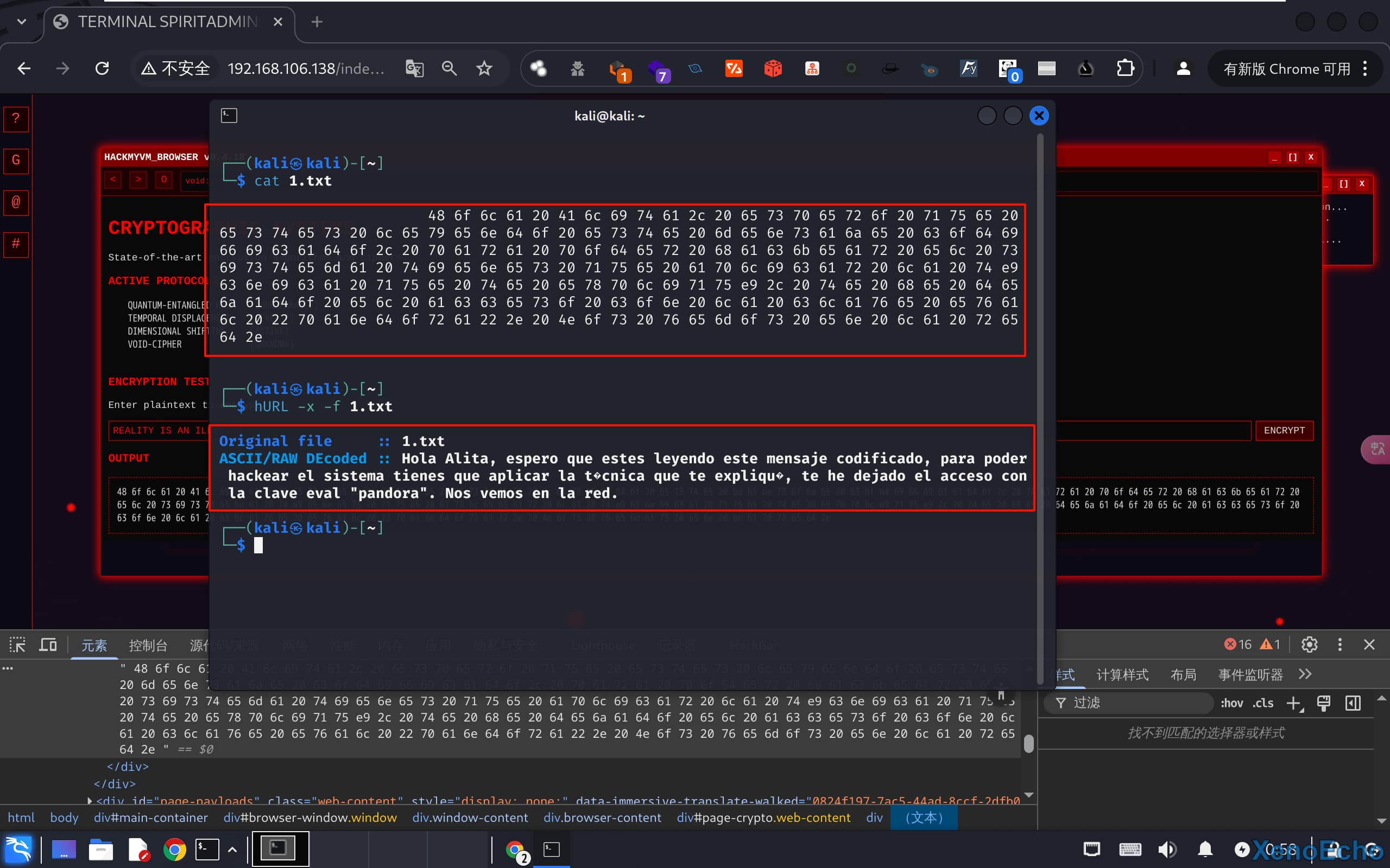 你好 Alita,希望你在阅读这段加密代码。为了入侵系统,你需要应用我教你的技术,我已为你留下访问权限,密钥是 'pandora'。我们在网络上见。 |