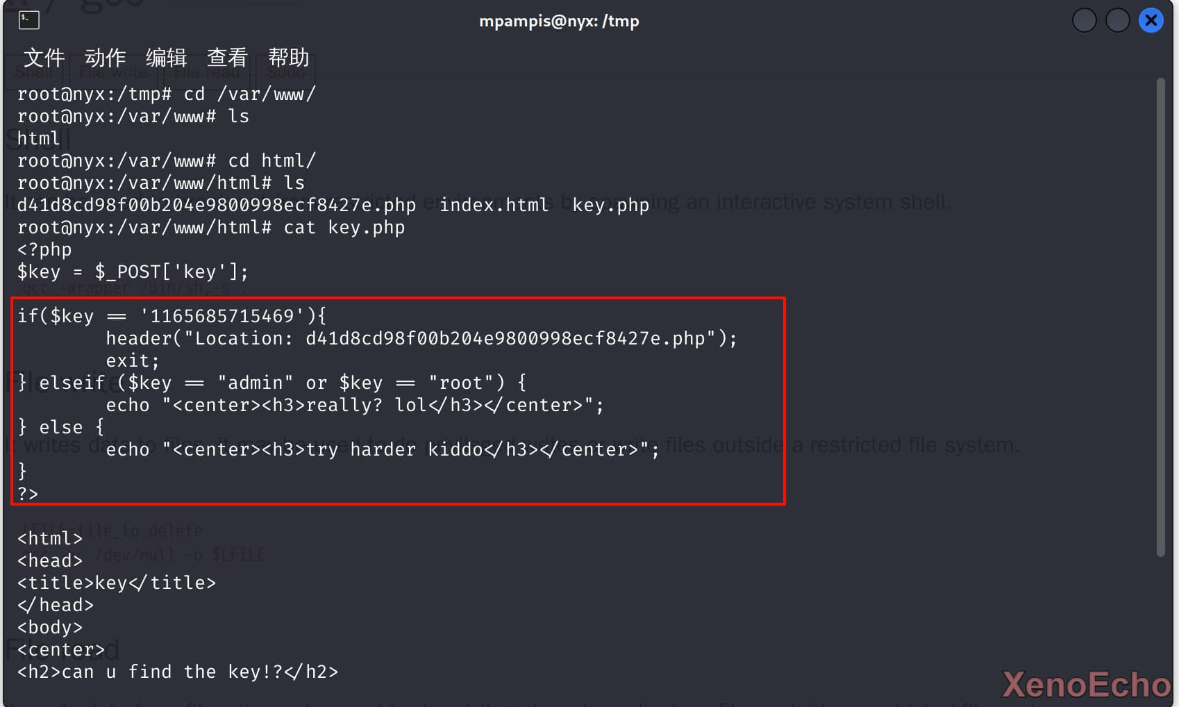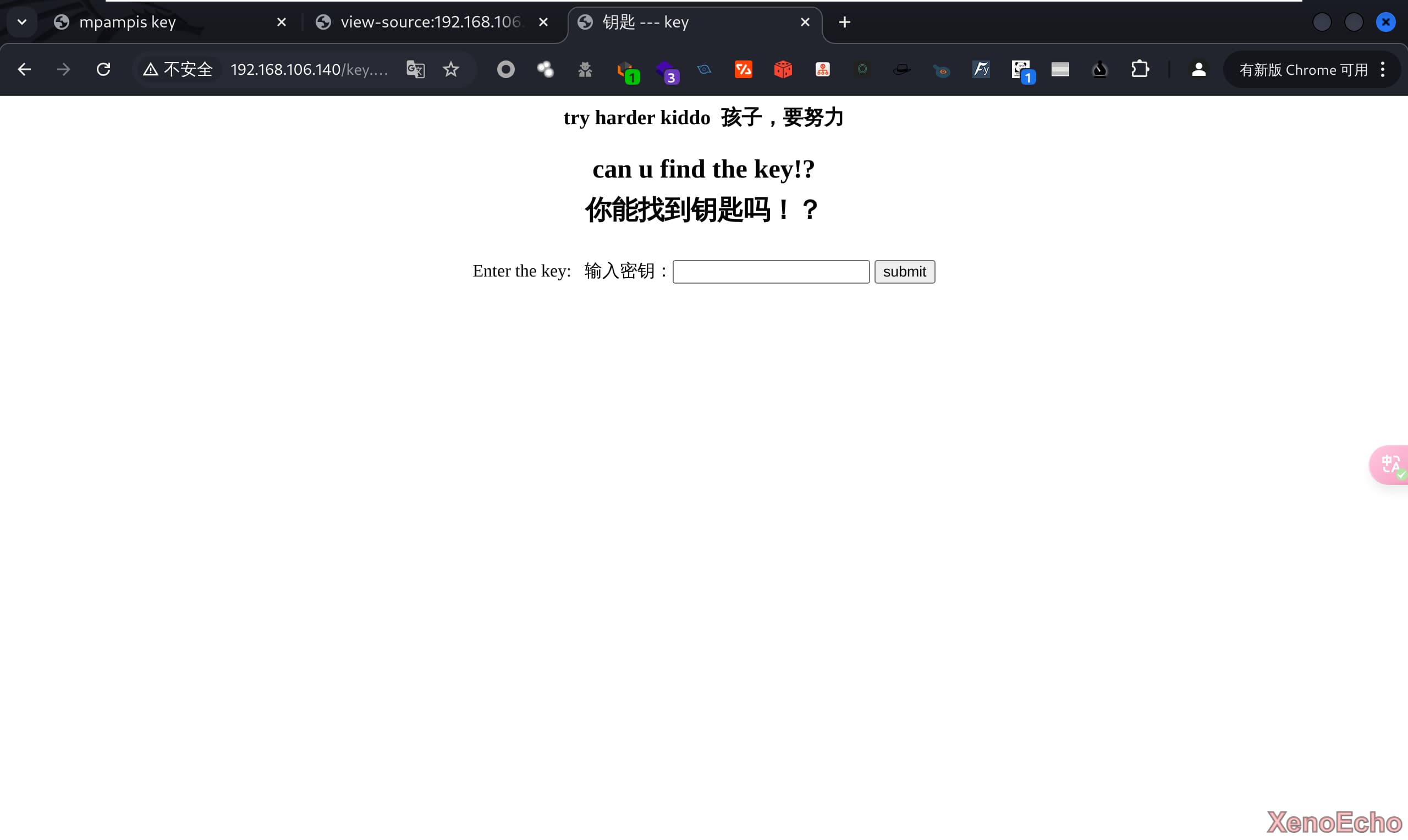 目录扫到一个key.php,打开是一个表单提交的。查看源代码是提交到当前页面,试了一下不存在报错和回显示??