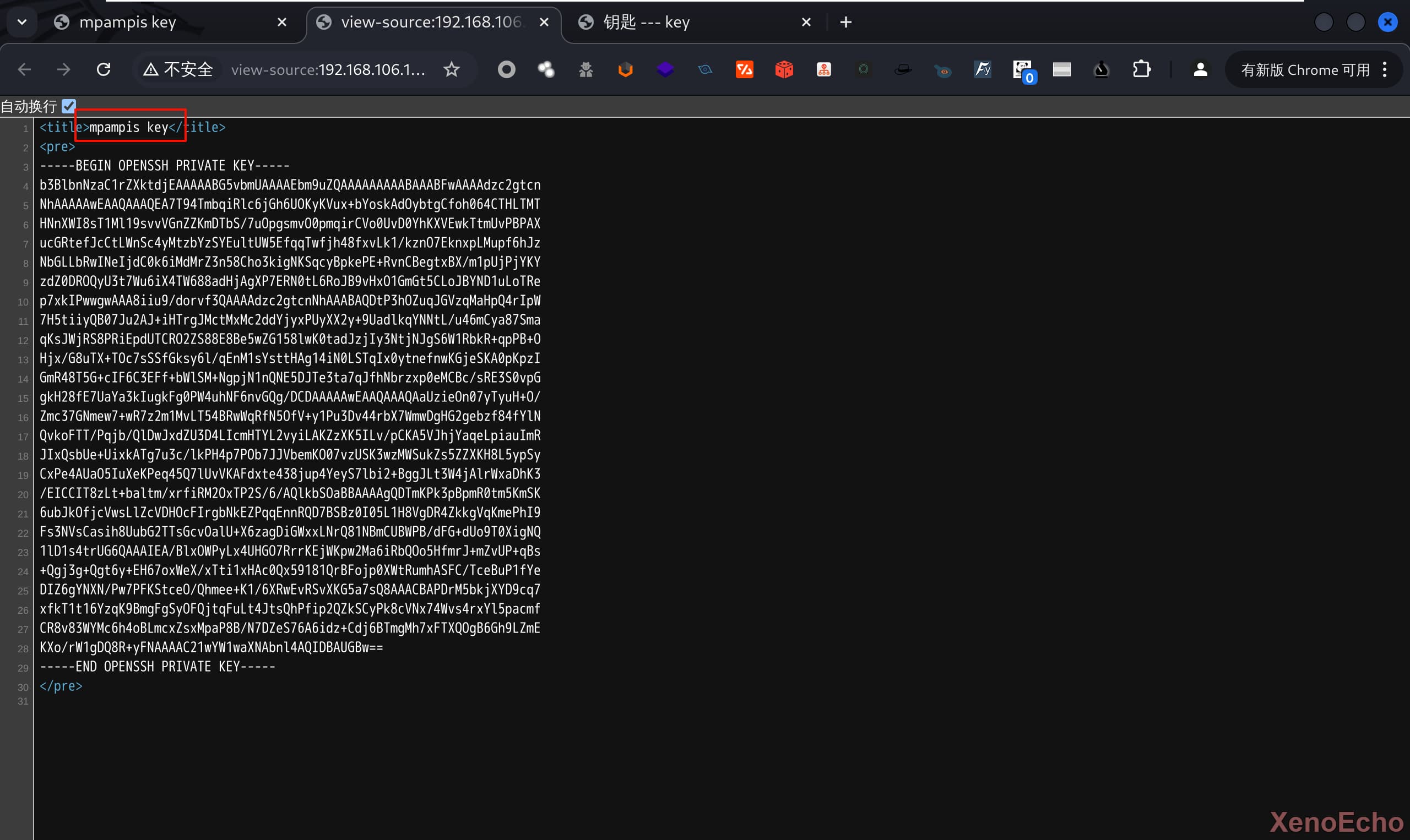 然后回到key的页面注意到它是存在title的提示mpampis key,这个会不会就算用户呢?而且1发现这个密钥后门的几个=好像是base64