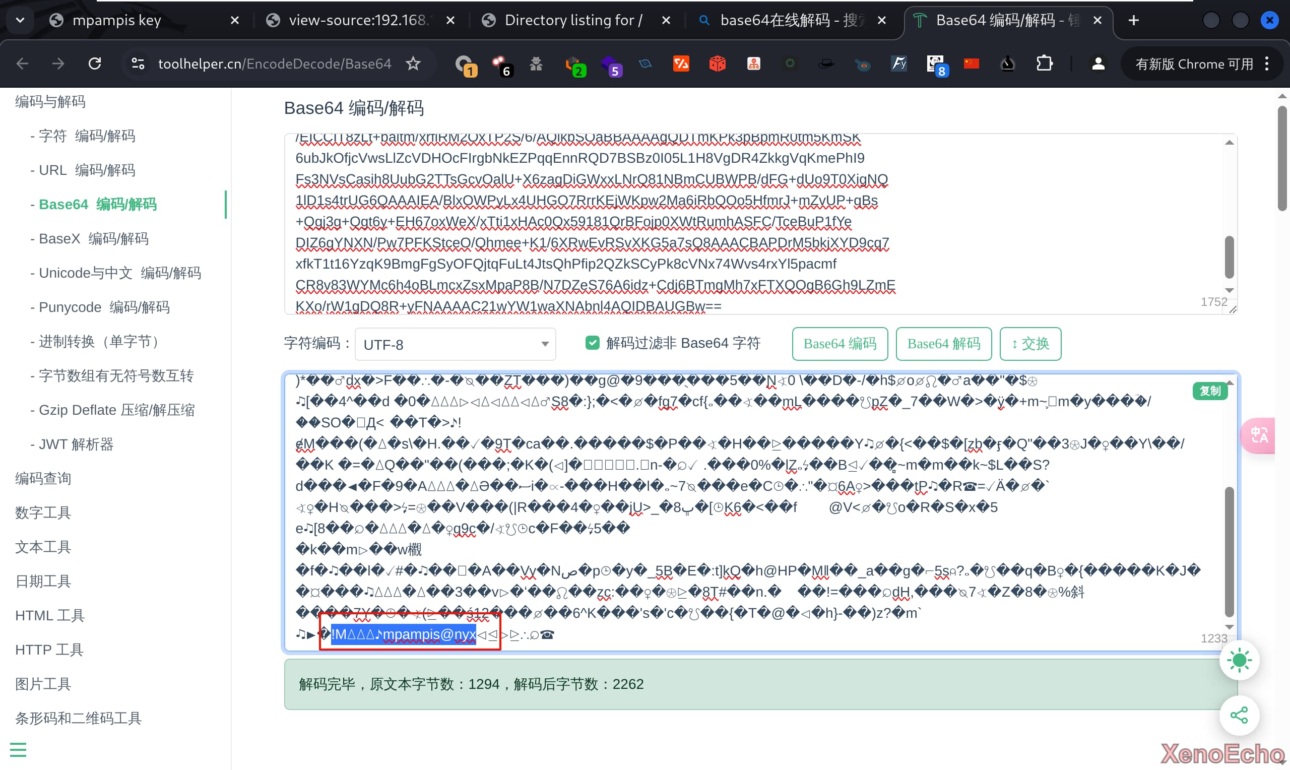 解密发现果然后面一段是base64加密的。内容刚好就是用户,那文件名那个看着那么像md5的不会也是