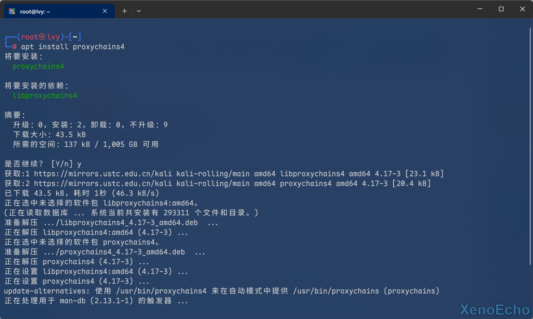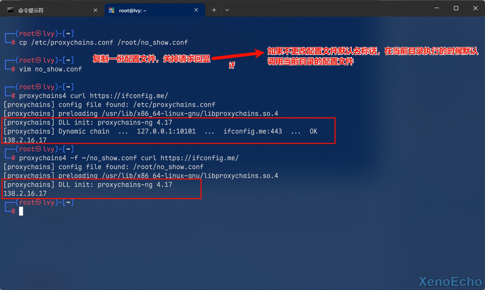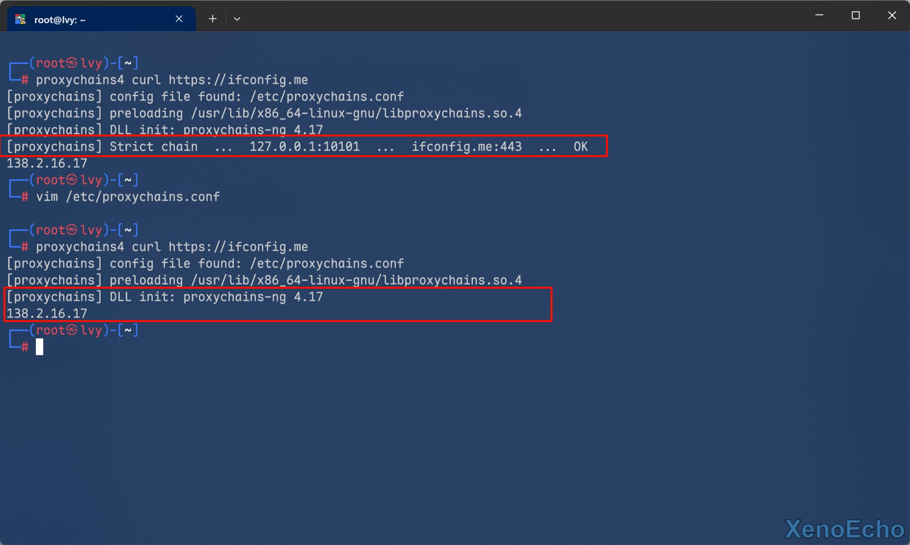 测试请求,这里用一个网站测试当前请求的地址,使用方法只需要在执行正常的命令的前面加上proxychains4或者proxychains即可